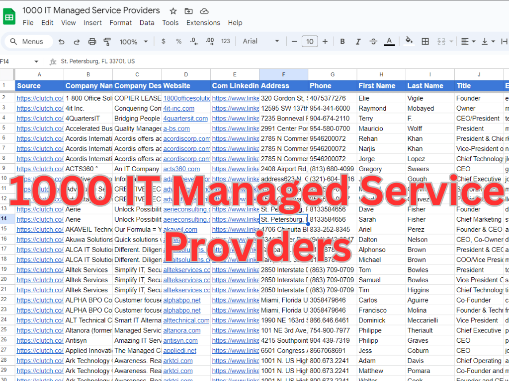 In this project, I did collect companies from the clutch. My Client Asked me to find 1000 companies that provides the IT Managed Services with two target people from the company. I did finish this project very well and the client was very satisfied.