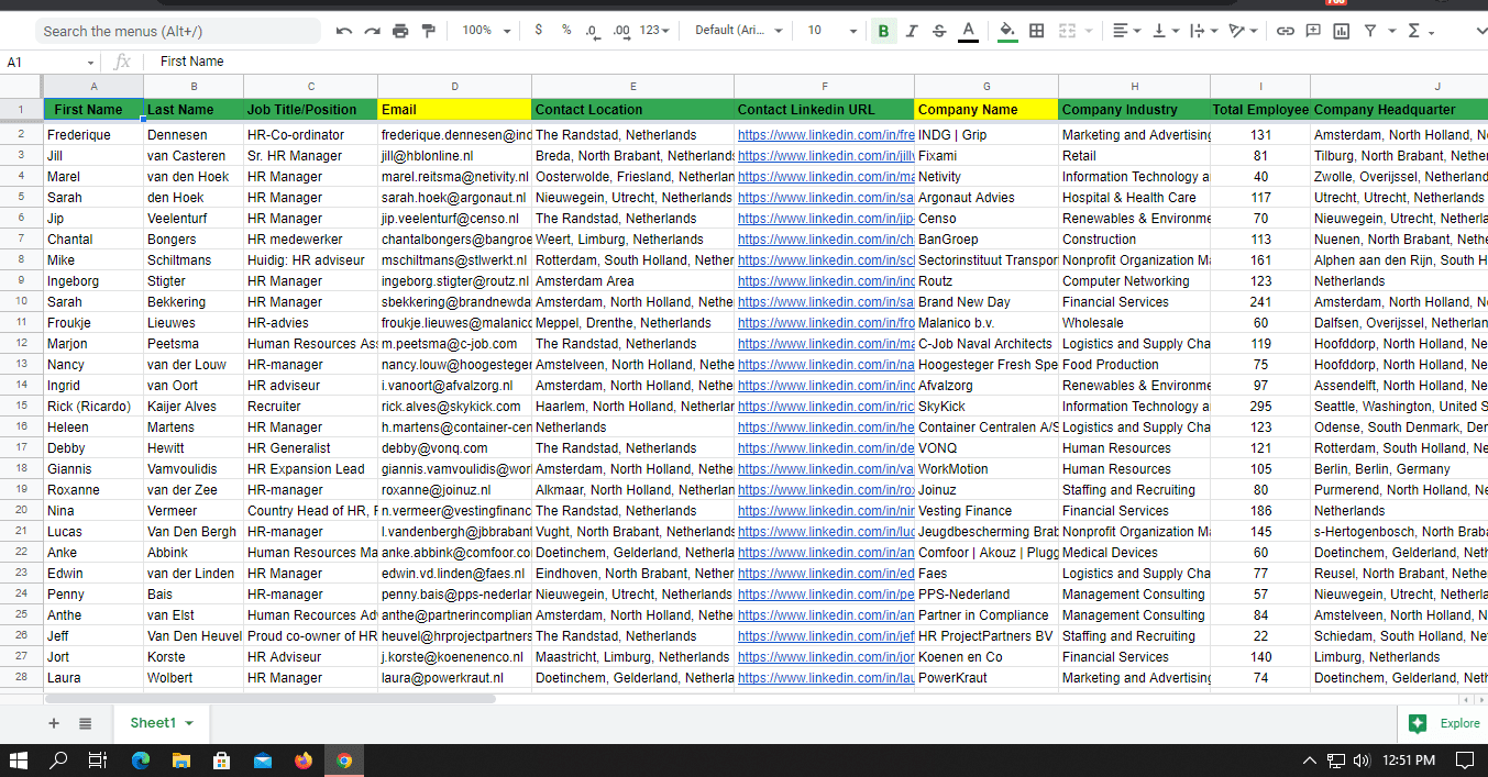 The client asked the HR Lead list from various industries like IT, Finance, Marketing and much more. He is really impressed with the final list.