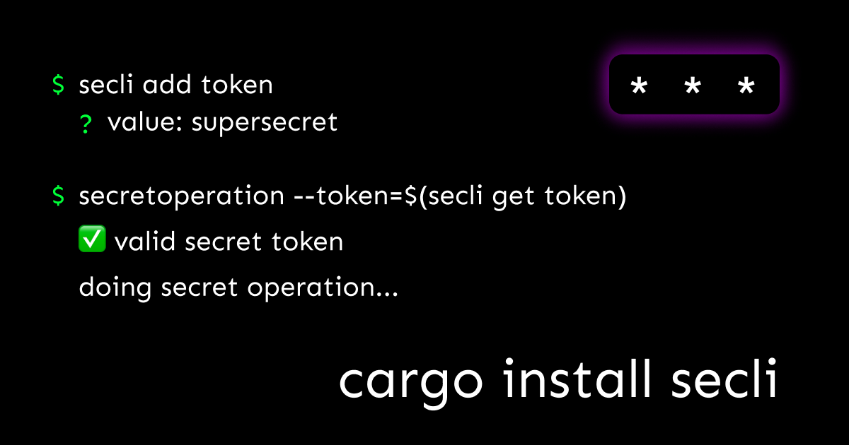 Secli is a simple CLI written in rust that lets you store secrets locally and retrieve them as needed. They are meant for applications like - secretoperation --token=$(secli get token)