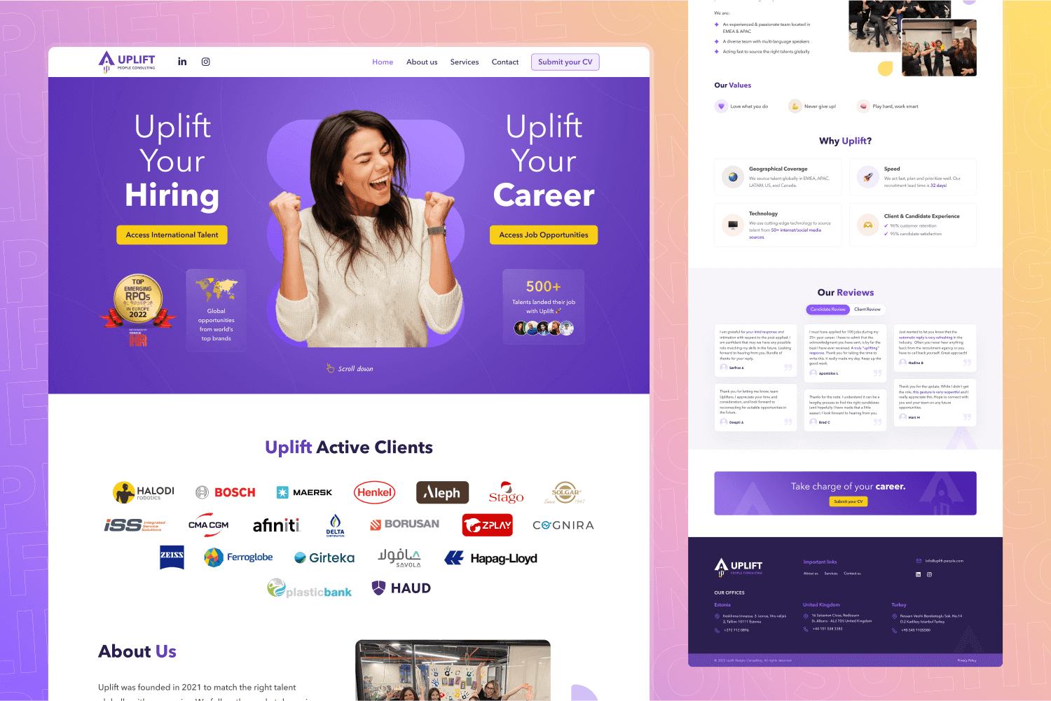 Uplift was founded in 2021 to match the right talent globally with companies. They follow the market dynamics closely and become a long-term strategic recruitment partner for their clients globally.
