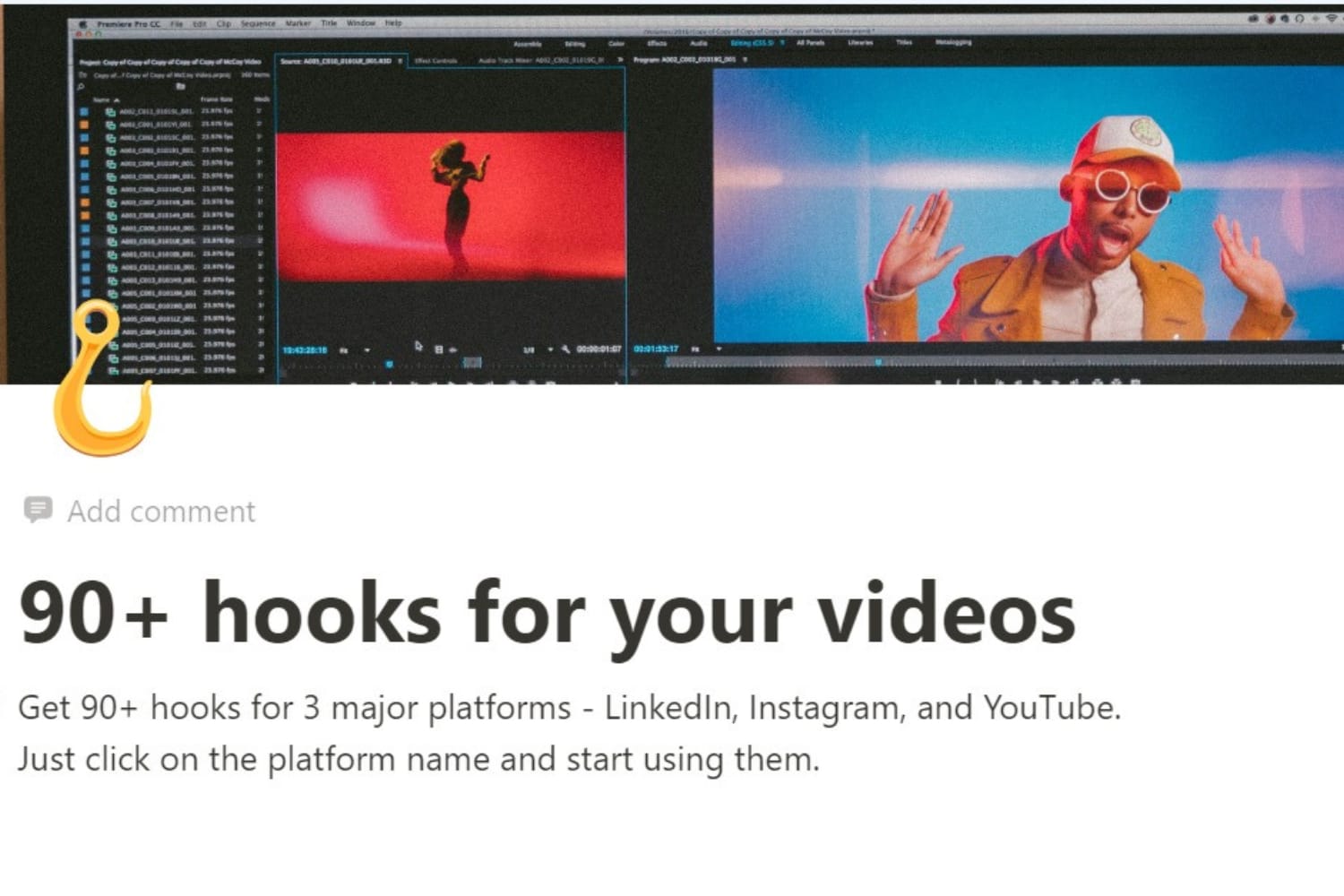 I was working for a CEO of a marketing agency. They are specialized in video marketing. To increase their reach and get more leads on LinkedIn, I created this lead magnet - 90+ hooks for videos.