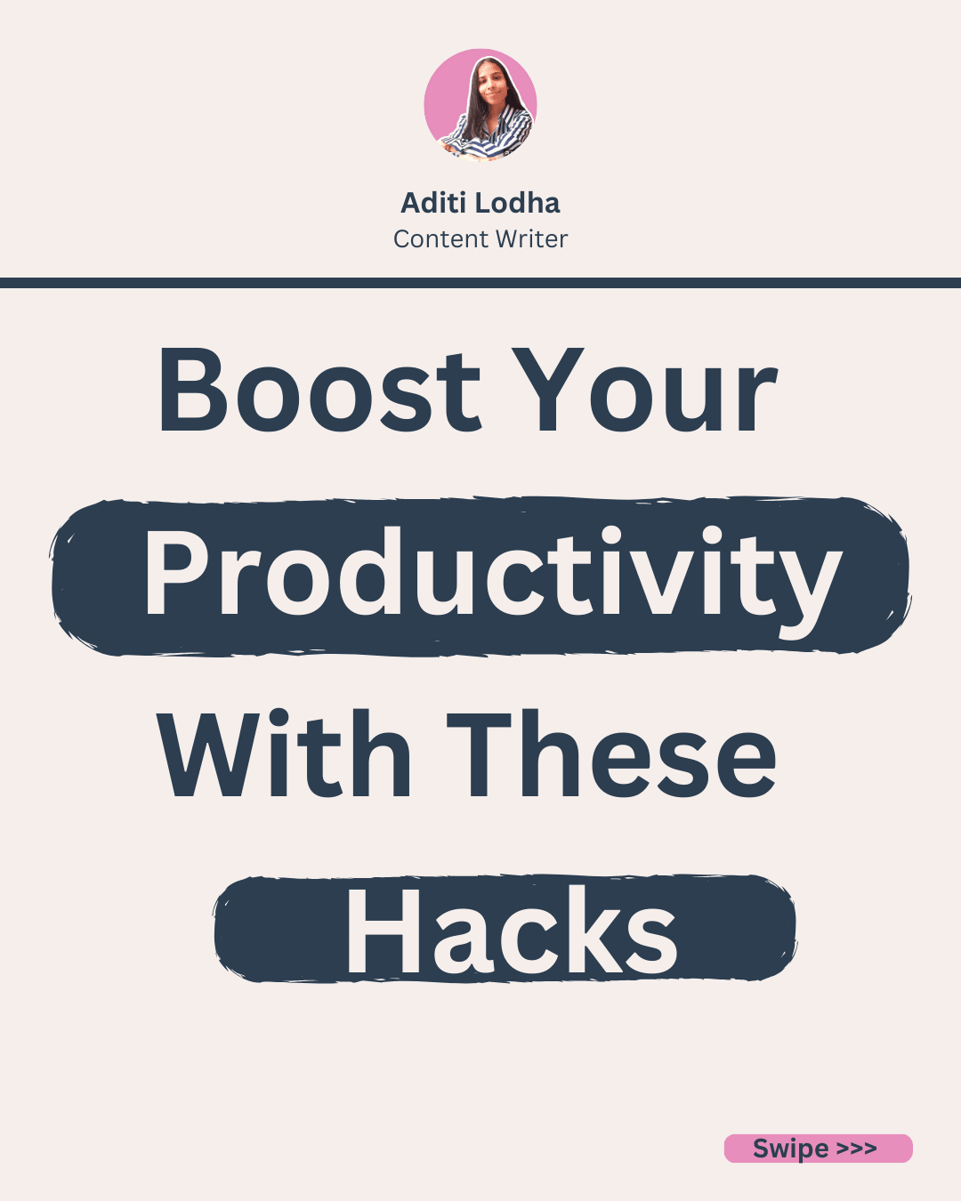 Description: I created a LinkedIn Carousel post about productivity hacks to polish my creative side. The post includes simple, effective tips to help people manage their time better and stay focused. Each slide is visually engaging, with clear and concise information. This project helped me enhance my design skills and I had a great time creating each slide.