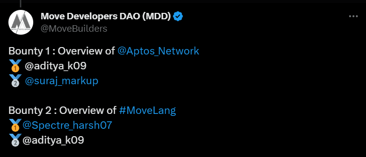 Secured 1st and 2nd positions in the writing bounty competition organized by Move Developers DAO.