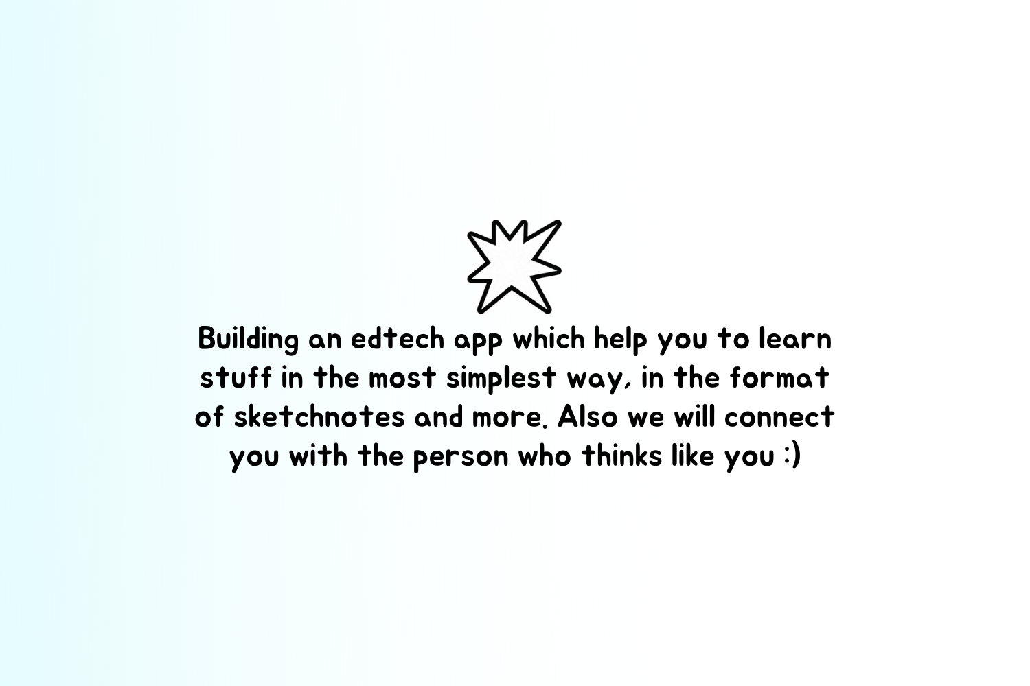 Building an edtech app which help you to learn stuff in the most simplest way, in the format of sketchnotes and more. Also we will connect you with the person who thinks like you :)