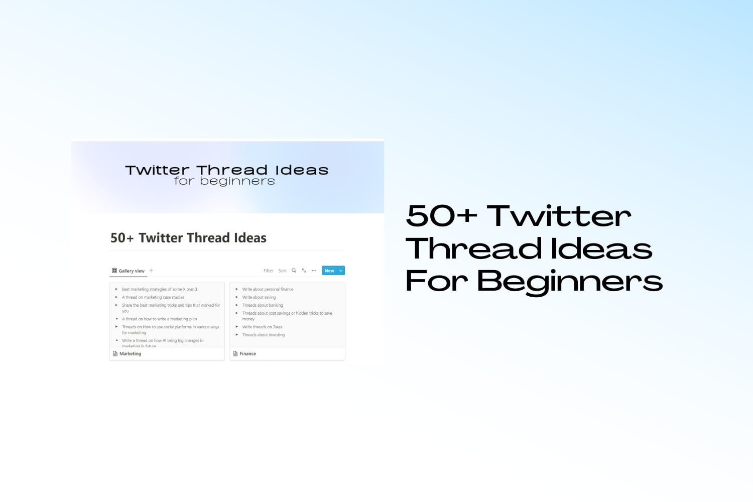Well, are you new to Twitter? You would definitely need to work on threads to show yourself on Twitter and grow!But, don't have any ideas to start writing?Here's the list of 60+ ideas on multiple niches for everyone. Will be updated with more ideas soon : )