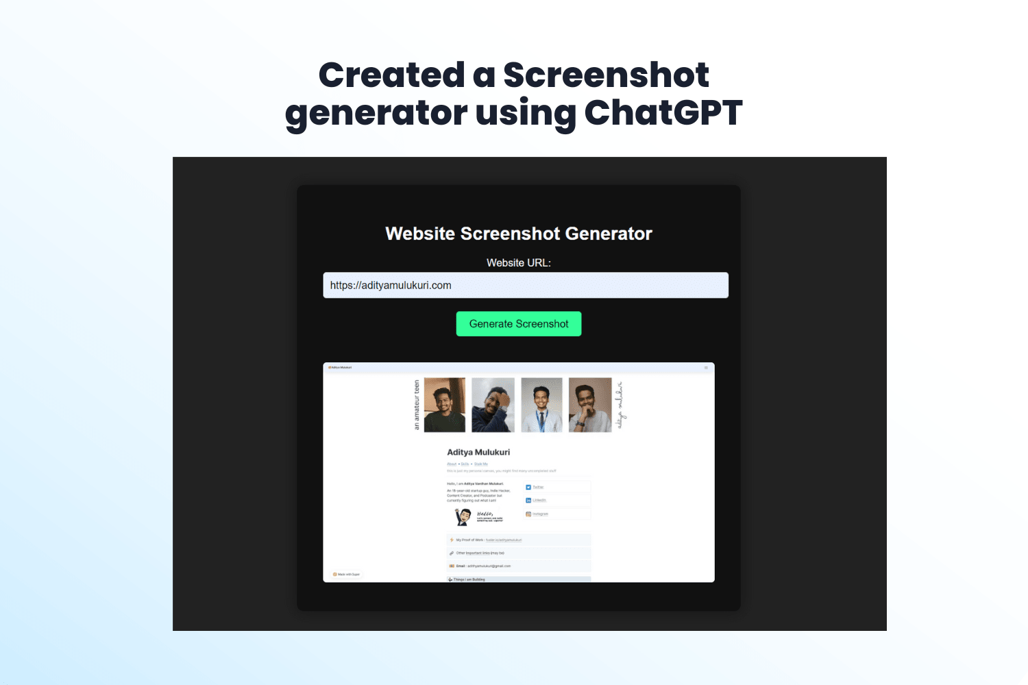 I have zero knowledge about programming, I gave a try asking Chat GPT to program a screenshot generator which takes the picture after I give it a link using CSS, HTML and JS. And damn, it created it!!!