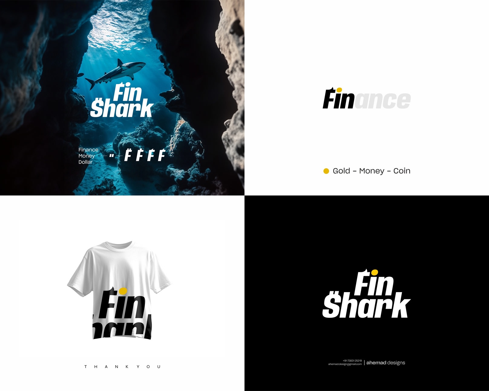 F = Fin (double meaning): The “F” is sculpted to echo a shark’s dorsal fin—a visual of speed, precision, and market agility. It also nods to Fin-ance and fin at once.