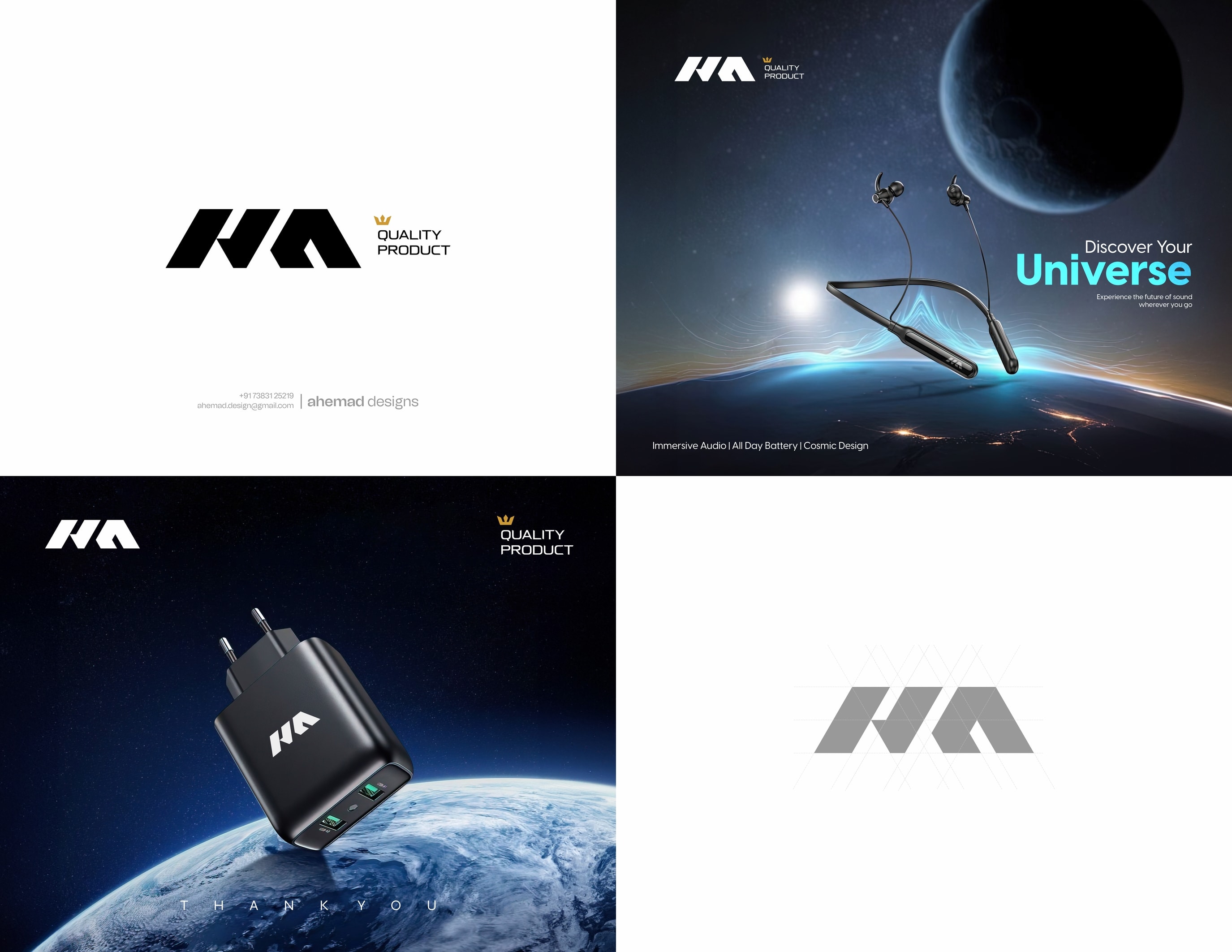 Here’s a glimpse of a complete branding project I created for HA Quality Products — a technology accessories brand built around innovation and reliability.
