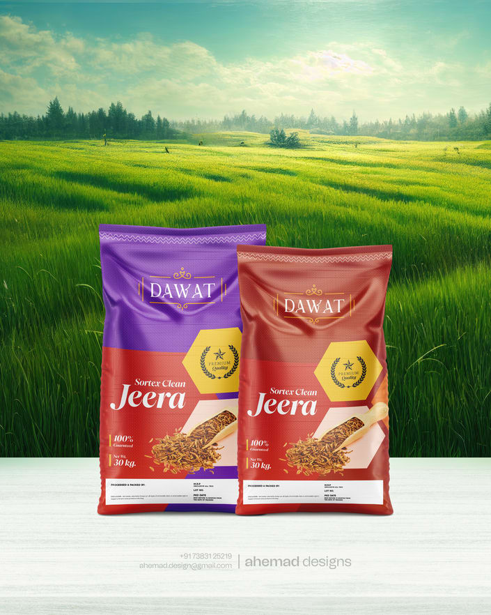 This Jeera rice packaging for DAWAT is designed to look premium, clean and dependable at first glance.