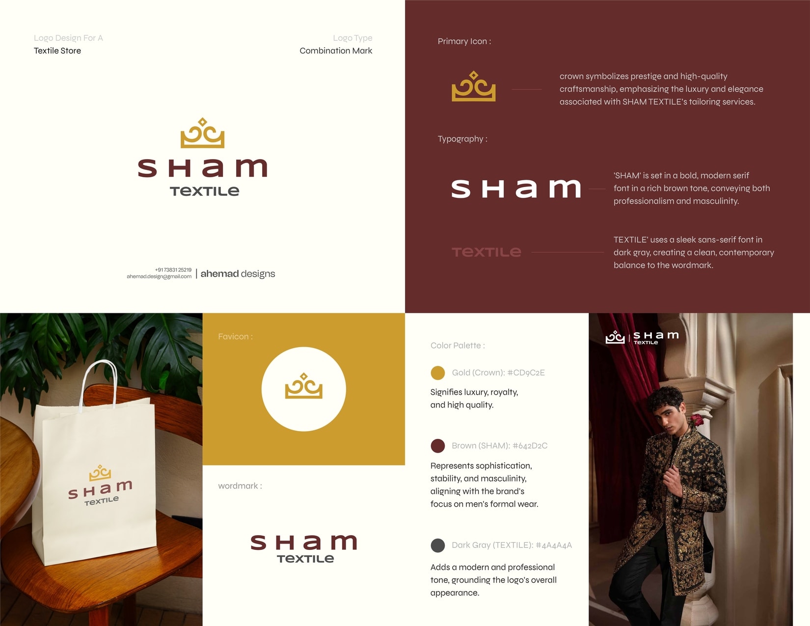 This logo design and brand identity for SHAM TEXTILE is crafted with authority and legacy at its core.