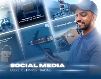 A professional set of social media designs created for a logistics and import-export trading company, featuring clean layouts, consistent branding, and visually engaging elements to enhance the company's online presence and audience engagement.