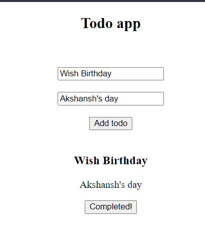 **UPDATE**- Made a full-stack version of this todo as well using React, Node/Express- https://github.com/akshansh-s/Learning-and-practise-FullStack/tree/master/Todo-app%20react%2Bnode