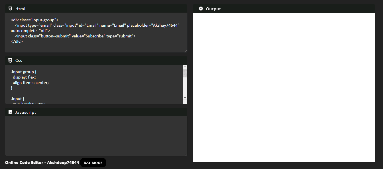 Online code editor for only html, CSS and JavaScript. In which you can code online with out any external software for coding and at that point it only base on large display mean its not responsive till date but working on it to give a responsive design for using also in mobile