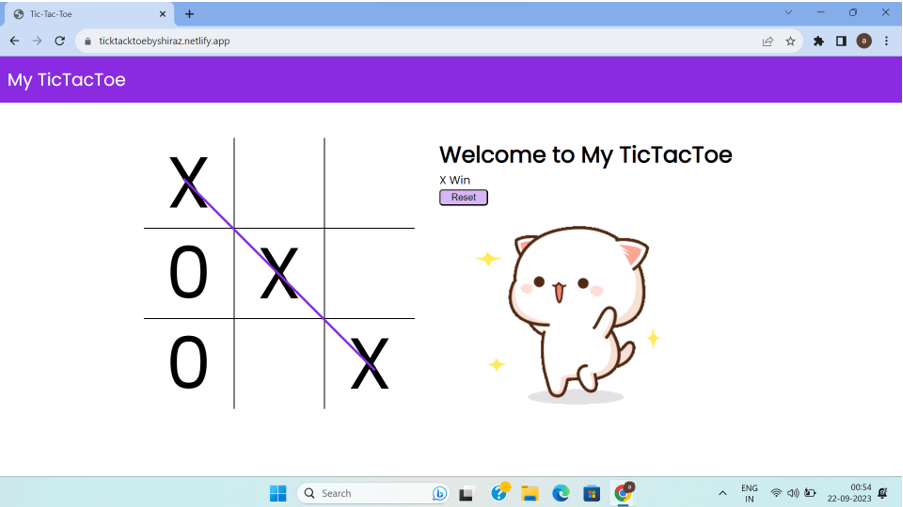 Inspired by "CodeWithHarry". Here I built the logic of a basic tick tack toe game with some animation.