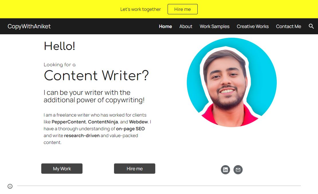 ✅ Showcased his creative work like articles, blogs, emails and creative content for social media posts.