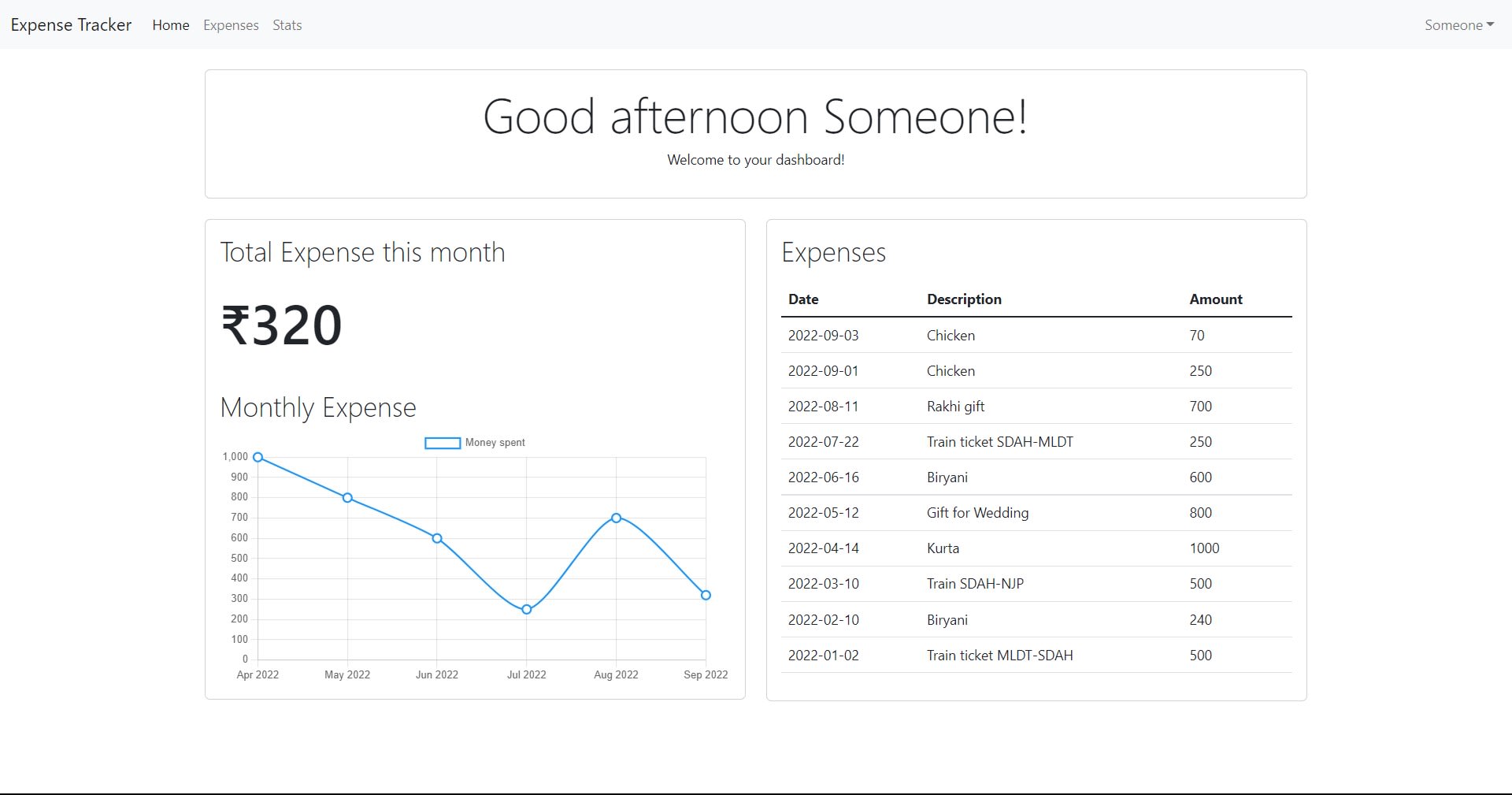 Try this expense tracker where you can add and visualize your expenses.