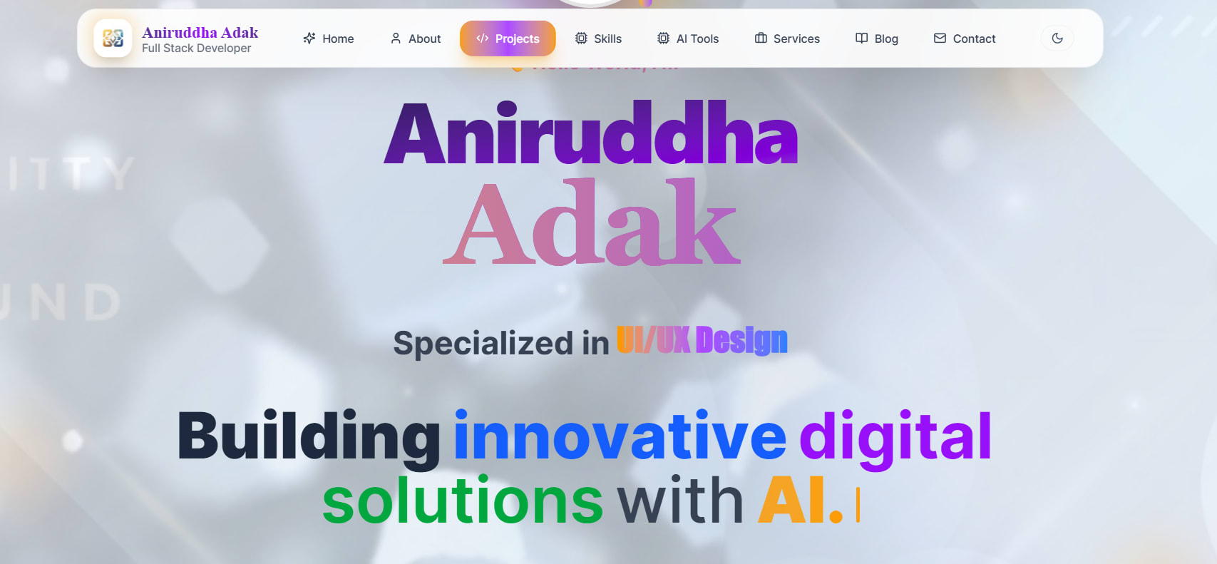 Portfolio of Aniruddha Adak - Passionate Full Stack Developer, AI/ML Engineer, and Tech Innovator specializing in modern web technologies and AI-powered applications.