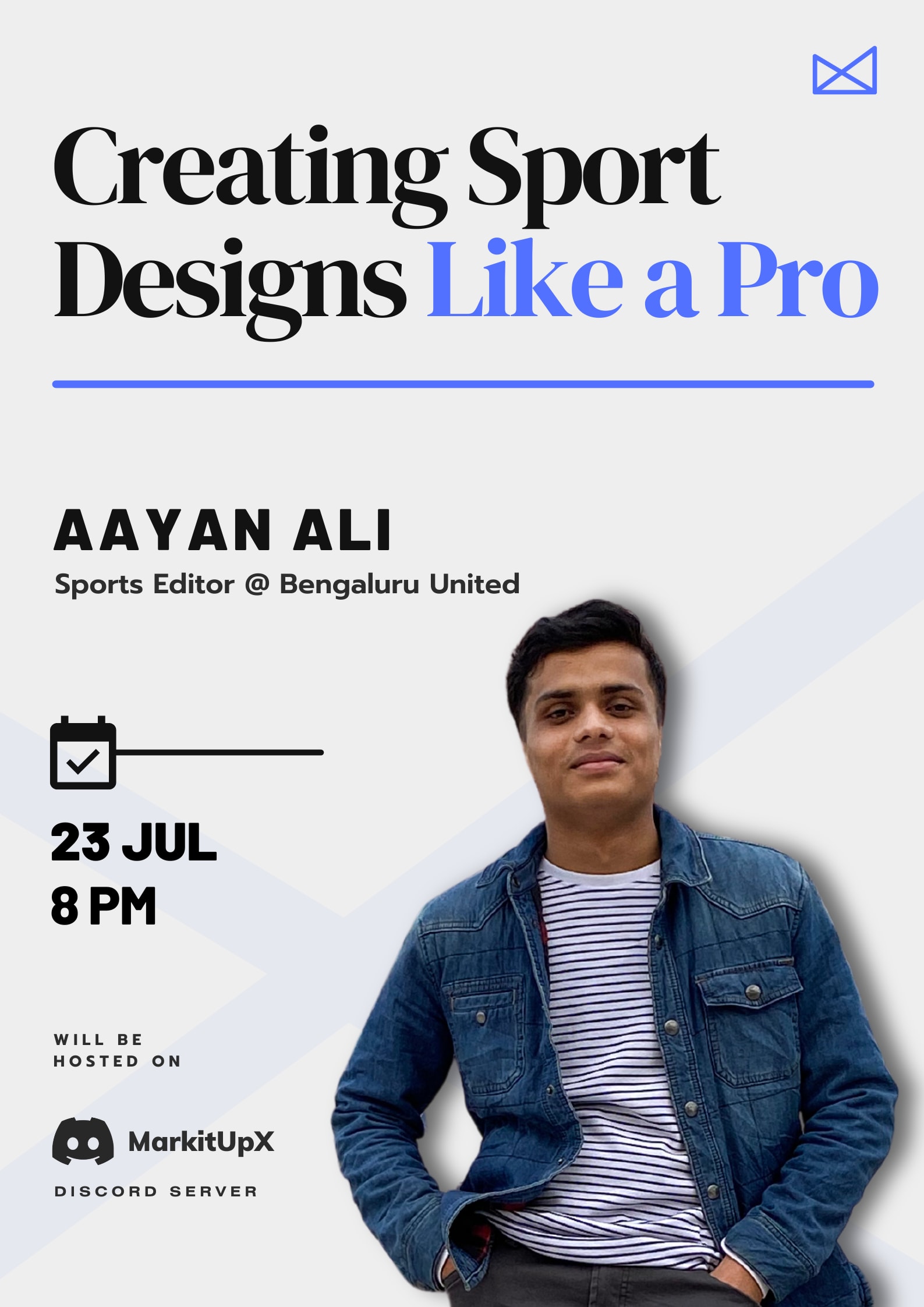 Hosted an interactive and informative session with Aayan where we talk about various aspects of sport designs. In this session we cover various topics like, where to get mockups from, how to match sharpness and shadows to suit the poster and so on.