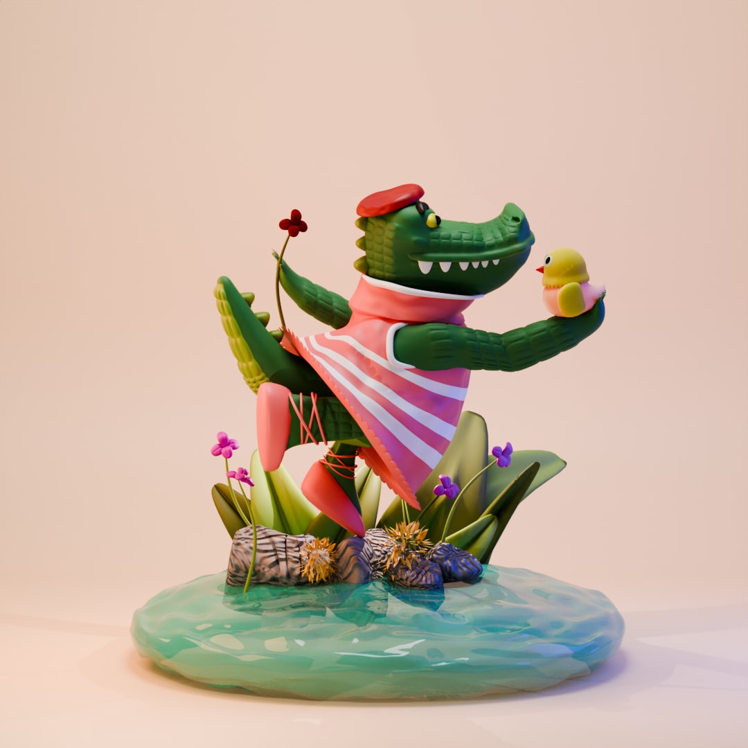 Worked on a challenge where I had to create animal in human character. Started of with a rough sketch of crocodile being a ballerina and cheering up a friend the bird.