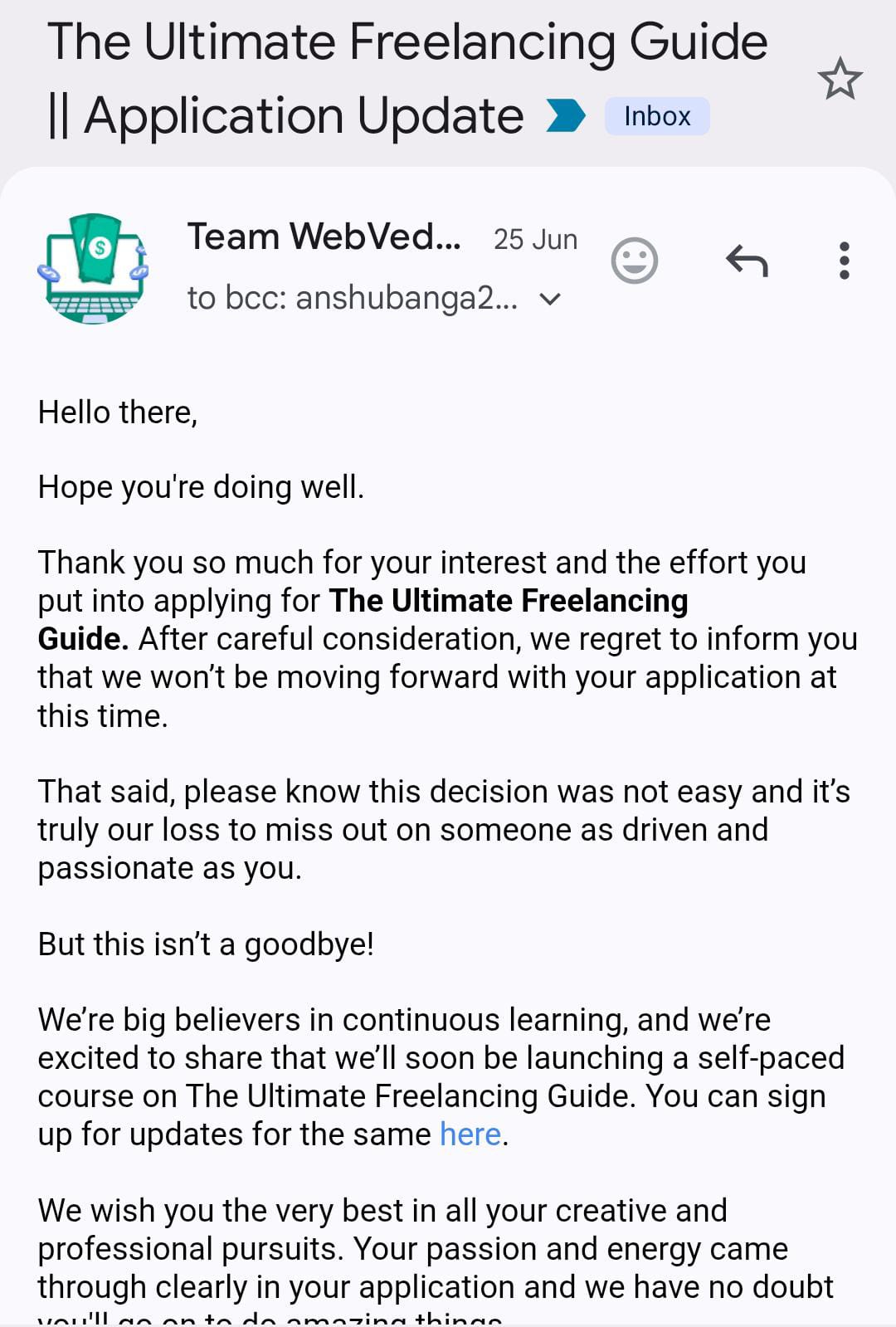 Out of 878 applicants, I was one of the 161 shortlisted for the interview round of The Ultimate Freelancing Guide, a freelancing scholarship by Ankur Warikoo and Team WebVeda.