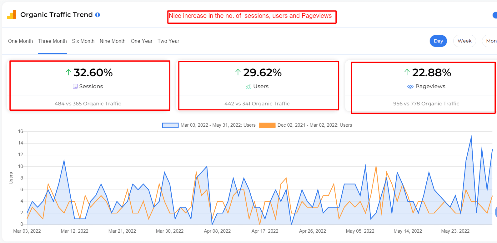 With a strategic focus on link-building, mainly business listings, and Google My Business (GMB) optimization, a leading windows and doors company in Ontario saw a 32.60% growth in organic sessions, a 29.62% increase in users, and a 22.88% boost in pageviews.
