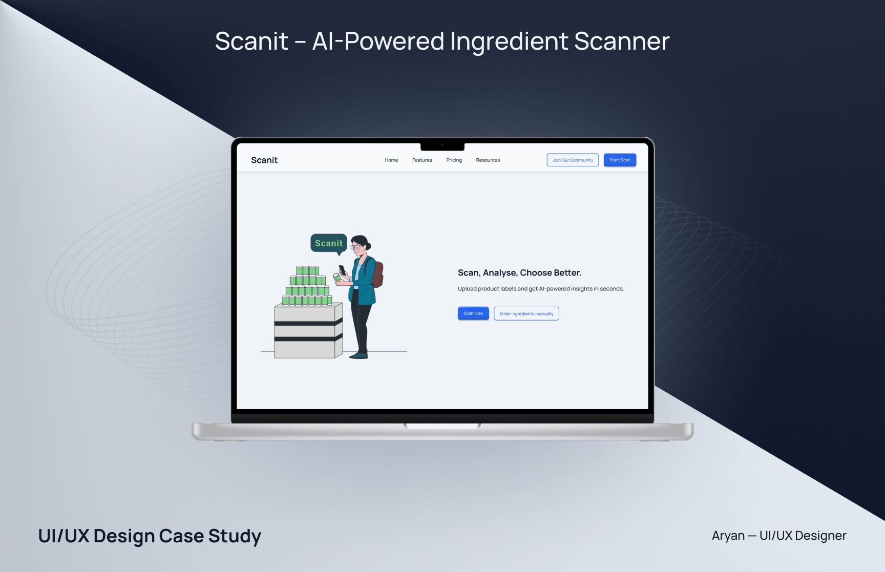 ScanIt β Ingredient Scanner (UI/UX Case Study) β Aryan K. J.