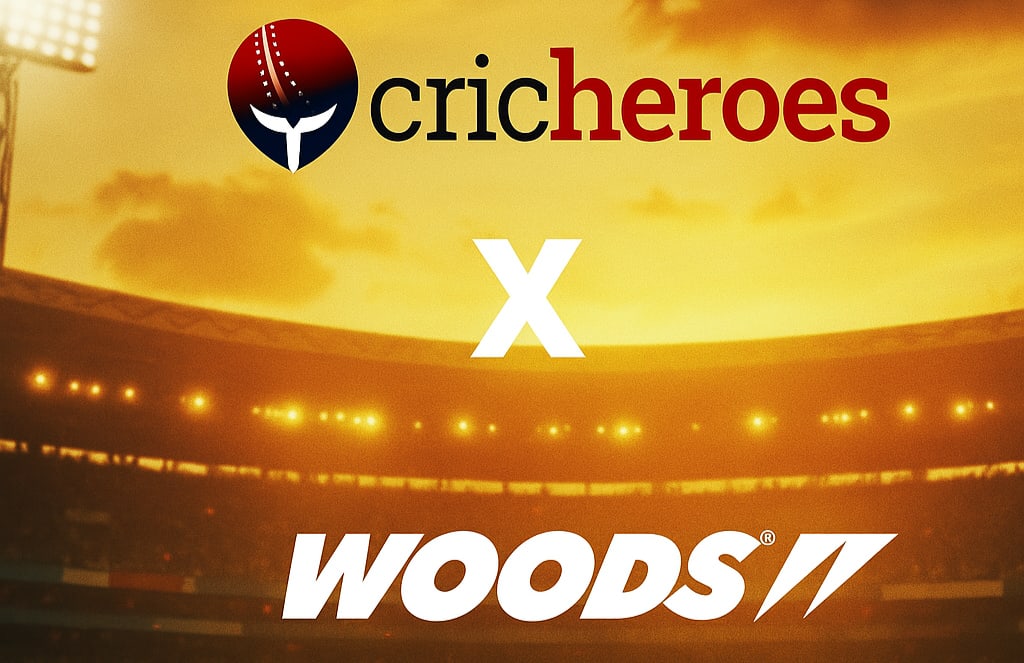 The “CricHeroes × WOODS” collaboration was done to represent a potential partnership promoting WOODS’ cricket kit integration with CricHeroes’ player ecosystem.
