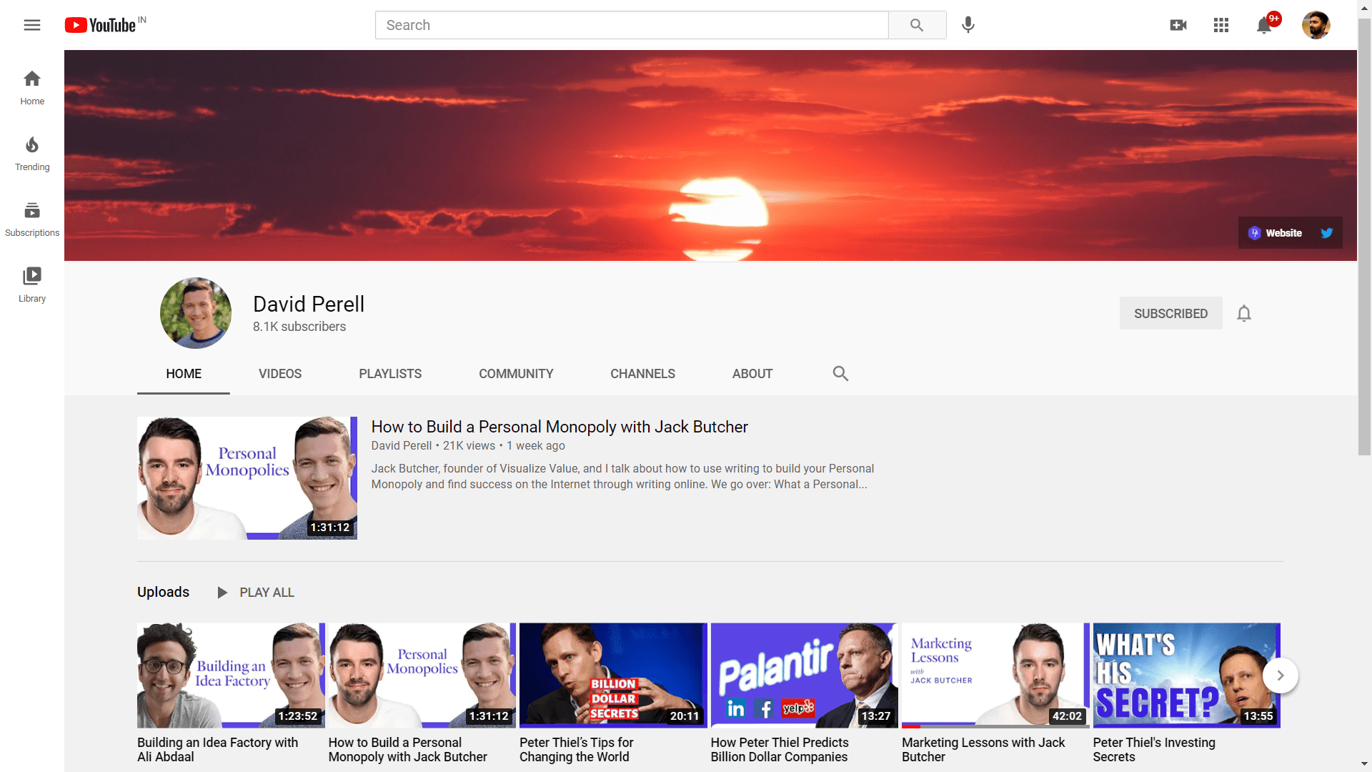 David has interviewed some amazing people I admire like Jack Butcher, Peter Thiel, Sahil Lavingia, Matthew Kobach.
