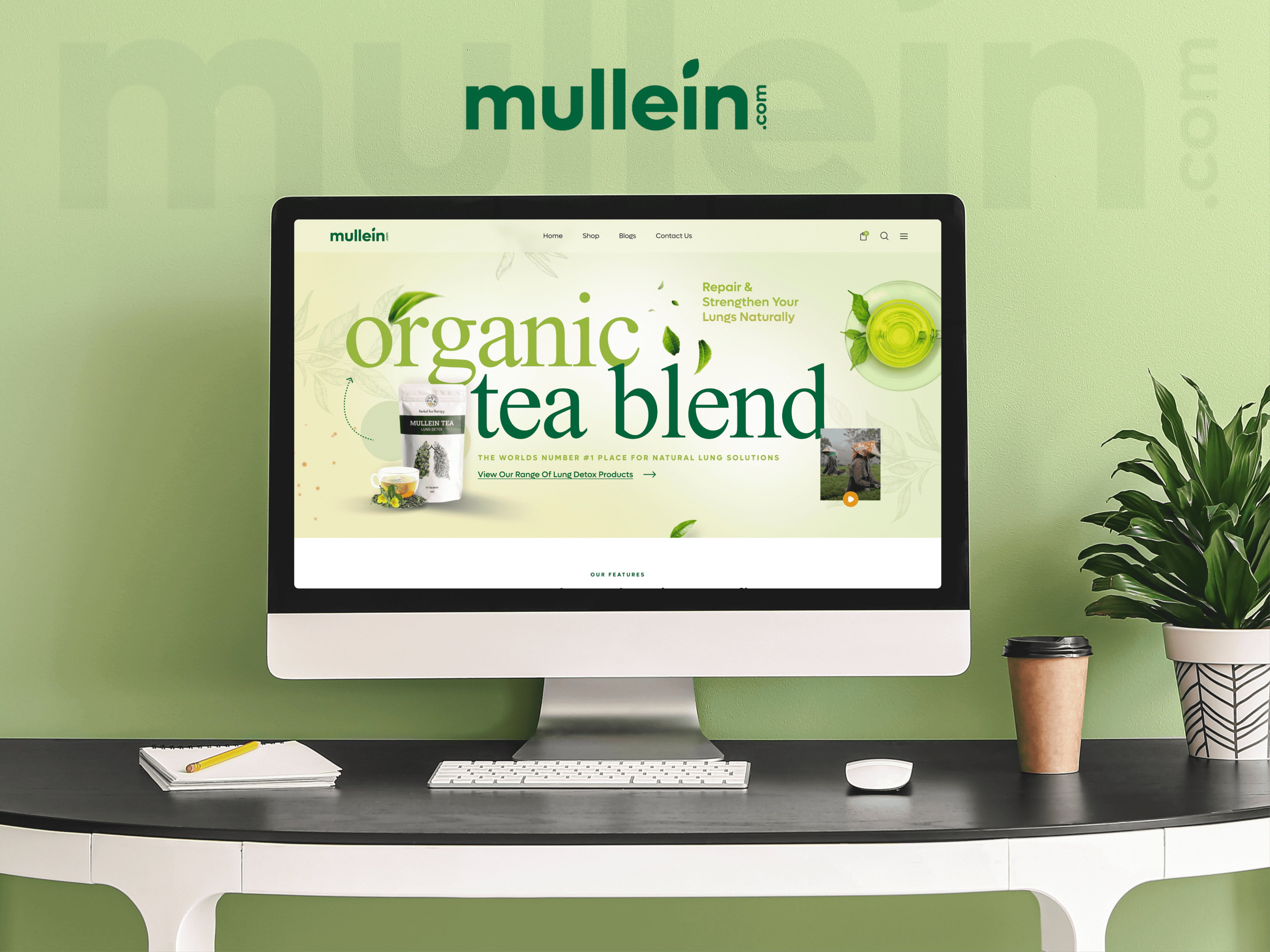 Mullein, a wellness company that sells organic lung-detox teas, has a sleek and contemporary eCommerce website design.