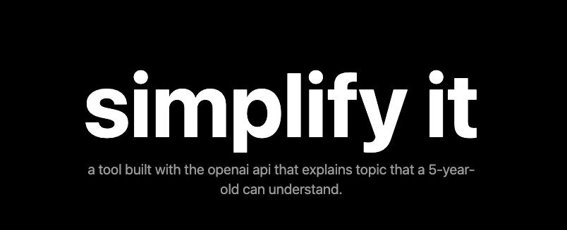 Simplify-It is a tool that helps you understand complex topics such as Recursion, Optional Chaining, etc that a 5-year-old could understand.
