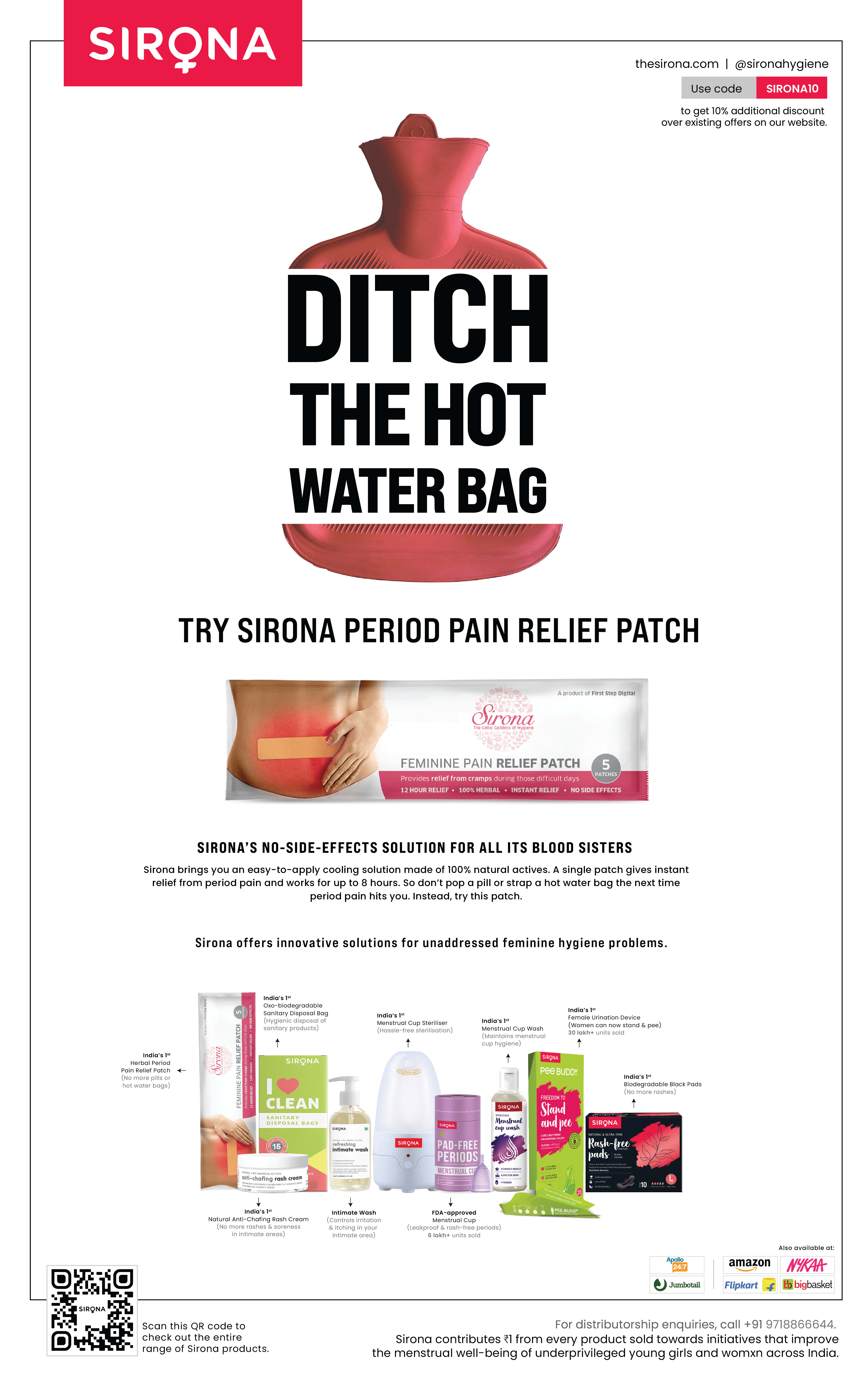 We crafted a striking ad with visuals addressing modern women's menstrual problems, paired with direct copy. The ad successfully highlights period discomfort and showcases Sirona's innovative menstrual hygiene products.