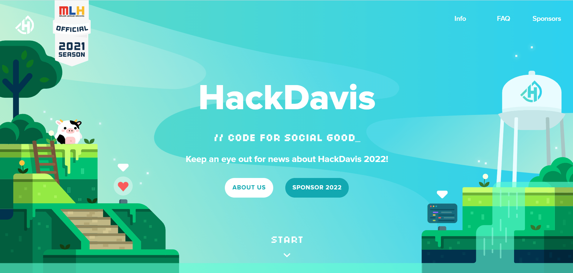 ● HackDavis is UC Davis' annual hackathon for students, run by students. On January 16-17, 2021, over 700 students, hackers, and creatives will come together virtually for 36 hours of hacking to solve the world's most pressing social issues