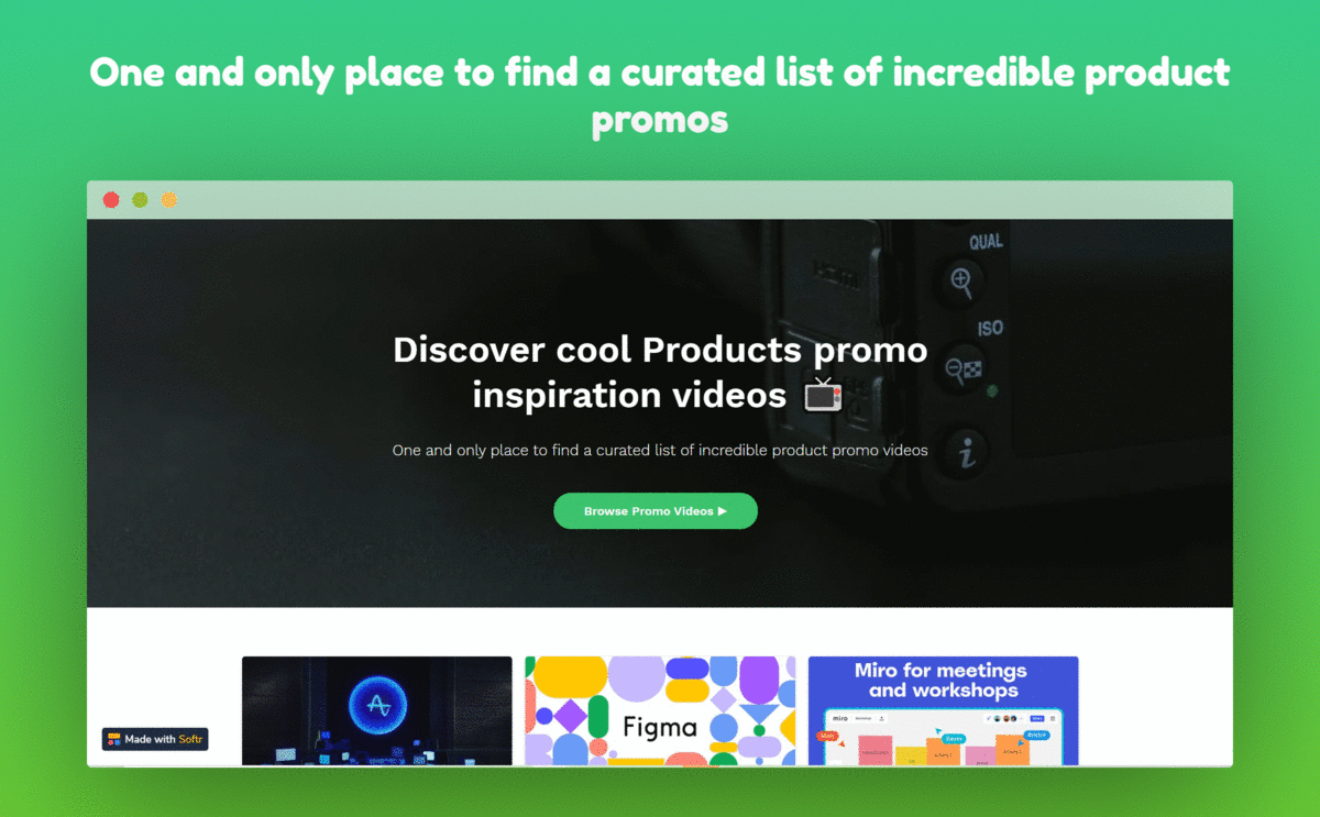 Featuring Promo videos of products like Amplitude, Figma, Github, ClickUp, Miro, Discord, Asana, Trello, Zendesk, and many more amazing products
