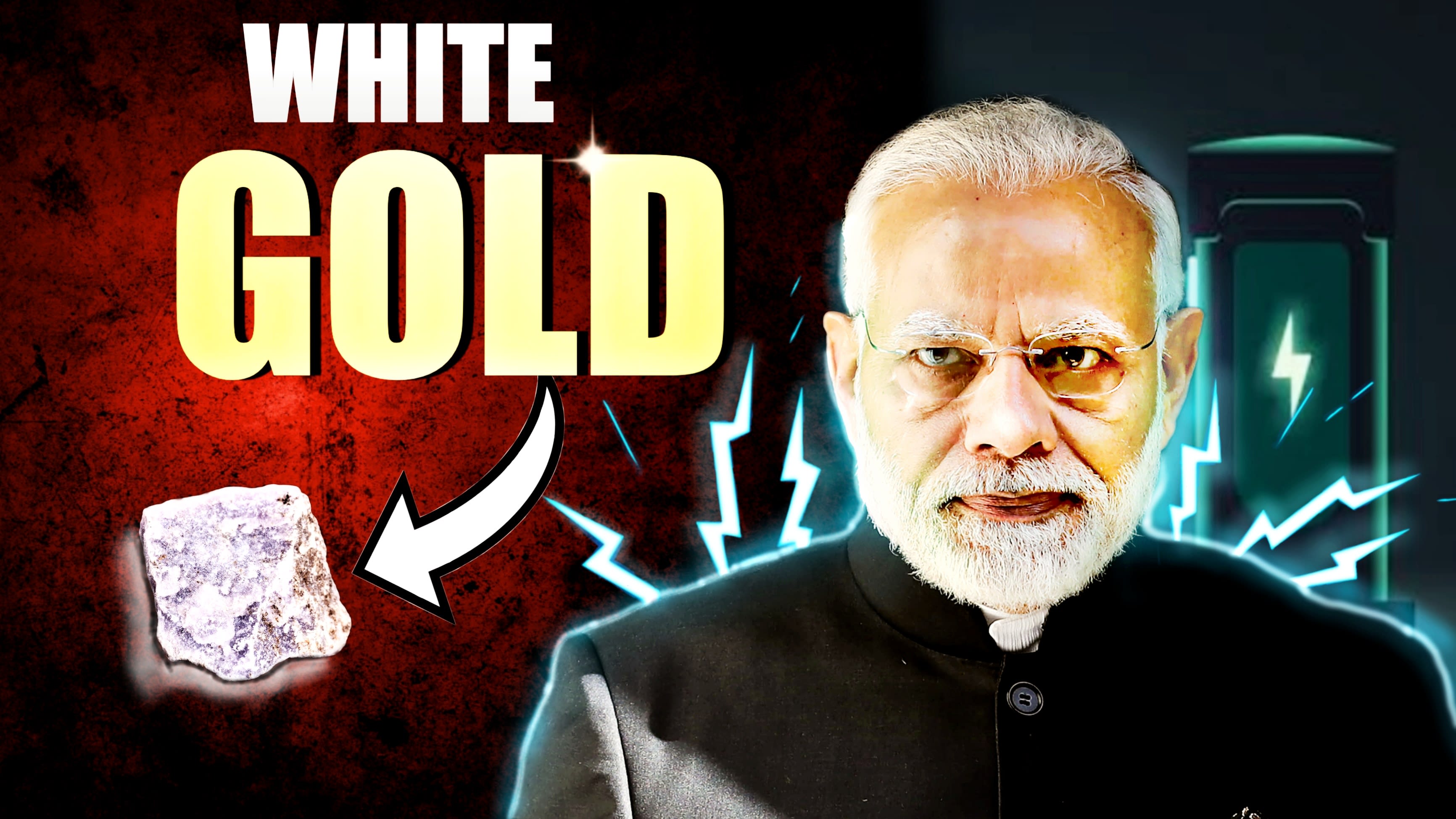 Thumbnail Concept: On subject we have "WHITE GOLD" as text where "Gold" has then golden colour and texture. A piece of lithium and a arrow from gold to the lithium rock.