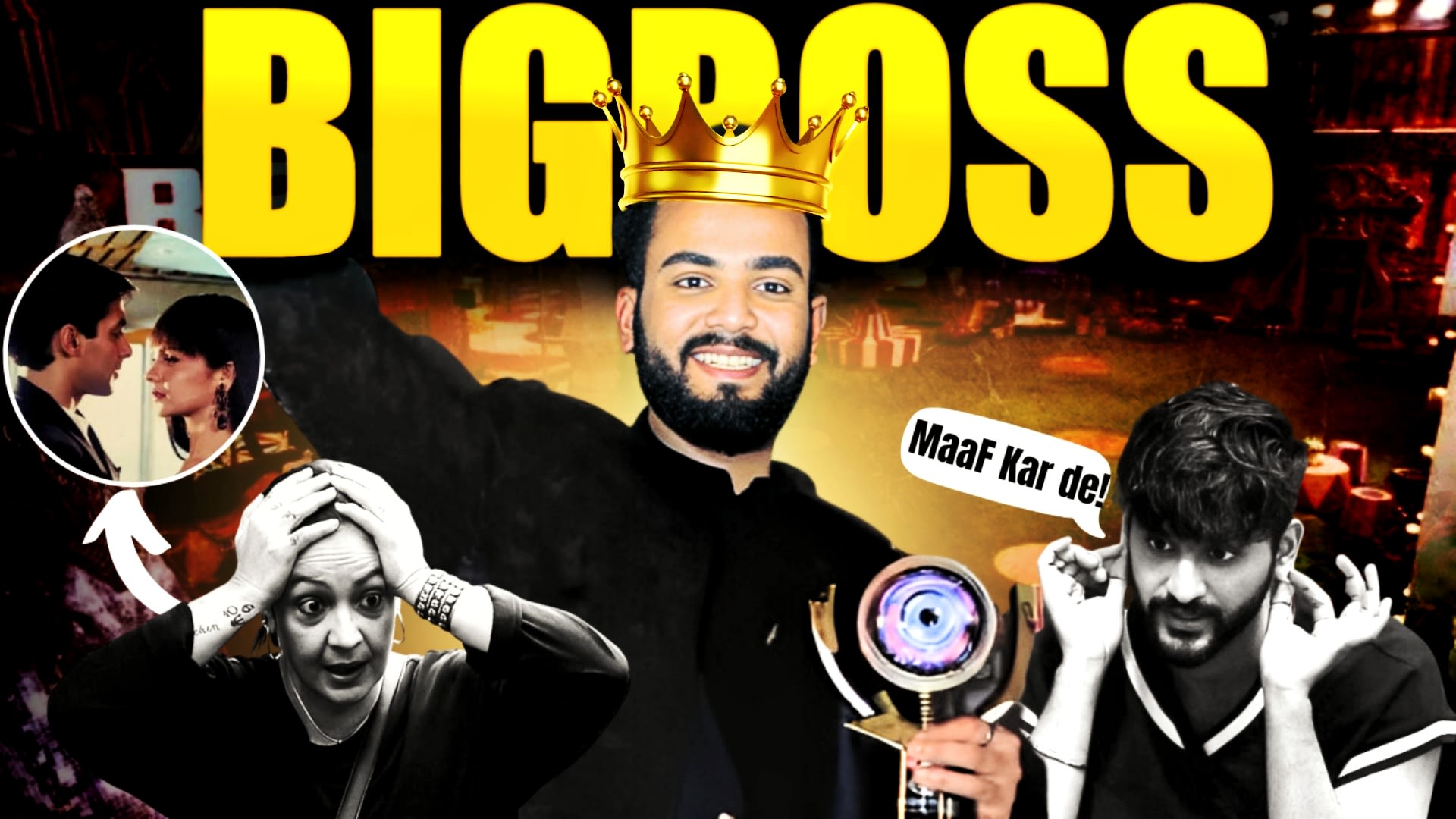 Concept: Elvish Yadav has won BigBoss OTT. Hence "BigBoss" in bold captial. He is winner that's why crown on his head.