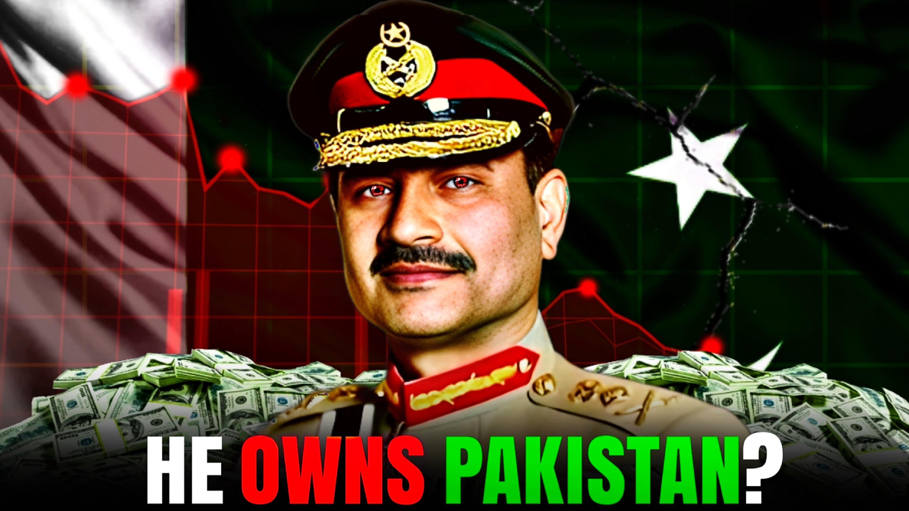 Thumbnail concept: Due to this political instability Pakistan's growth is affecting hence we used a negative red graph behind that Pakistan's torn flag. Subject Asim Munnir current chief of army staff, Pakistan. He is flooded with money showing he has so much influence there. Then ending with a intriguing question "HE OWNS PAKISTAN?".