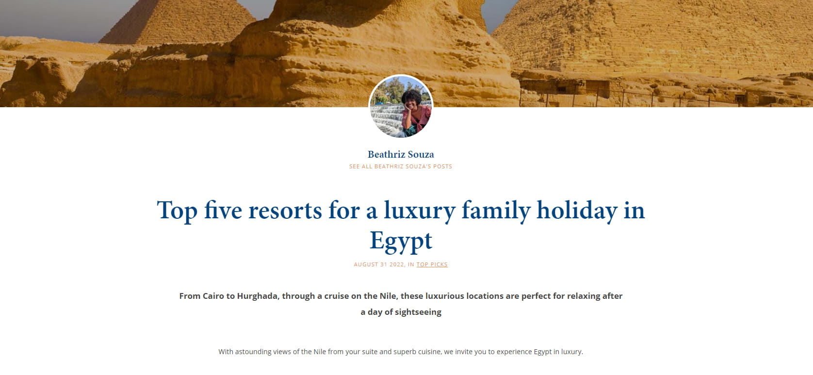 The primary goal of this blog post is to position A&K as the go-to luxury travel brand for discerning families seeking unparalleled experiences in Egypt. By highlighting the Top 5 resorts, I aim to showcase our expertise in curating exclusive and family-centric itineraries, reinforcing the brand as the ultimate authority in luxury travel. In order to create this content, I researched Egypt's top accomodations and used tools like Hemingway App to curate the copy. Tools like SEMrush or Ahrefs for keyword research and optimization were used to ensure the post reaches a wider audience. Regular team meetings and feedback loops were established to refine and enhance the content, resulting in a polished final product ready to captivate our audience and drive engagement.