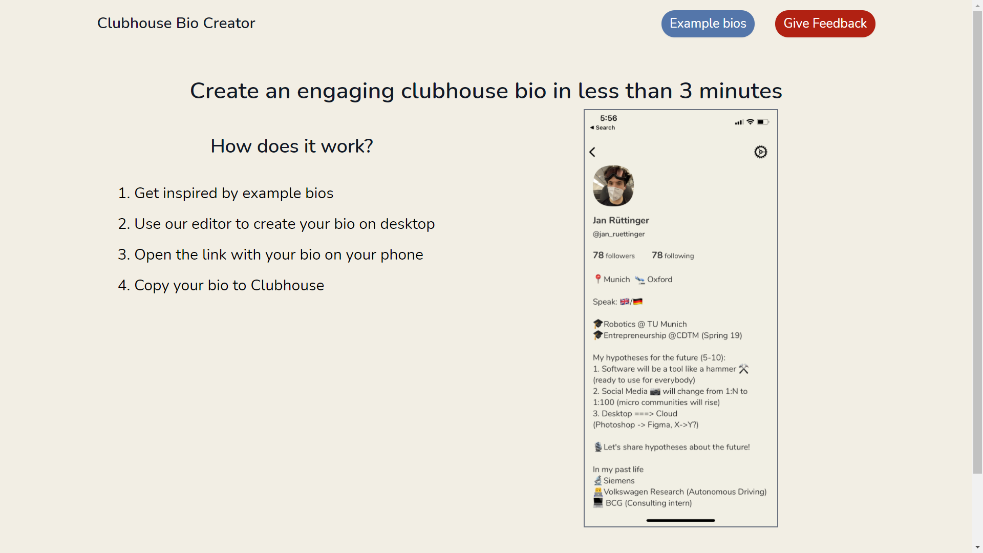 This tool is especially for clubhouse fans that help you with generating cool and fresh bio for your clubhouse profile.