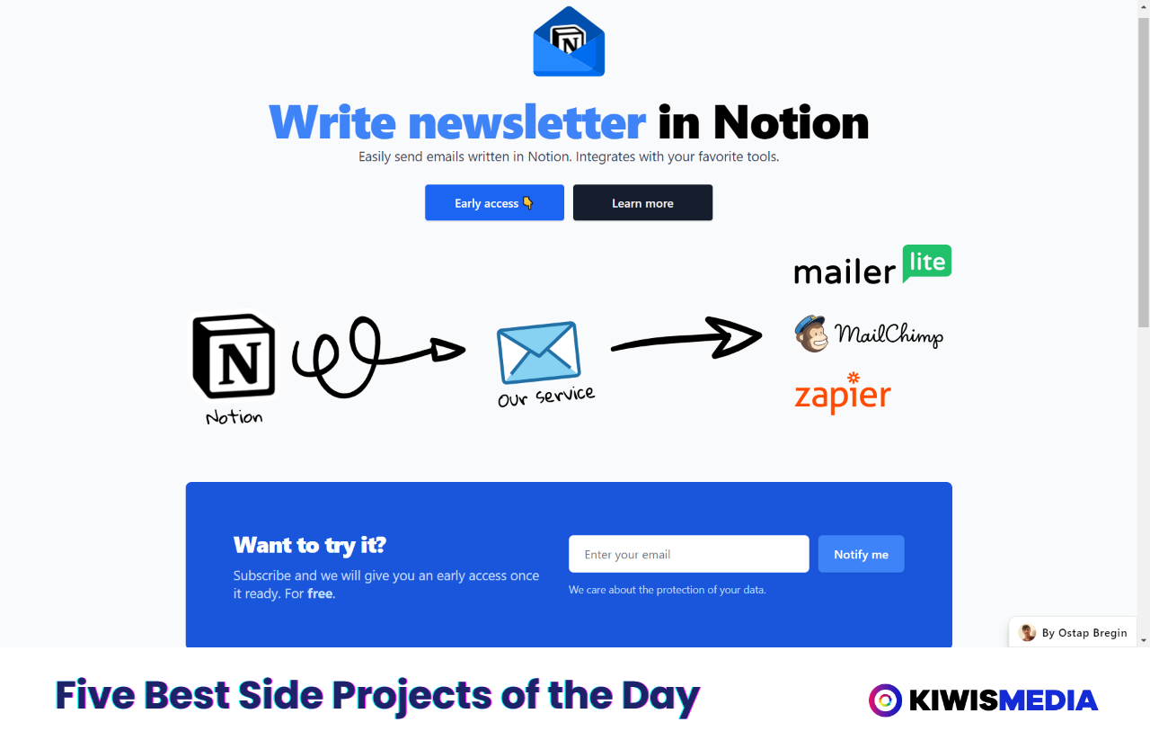 A tool that helps you in writing and sending newsletter directly from Notion.