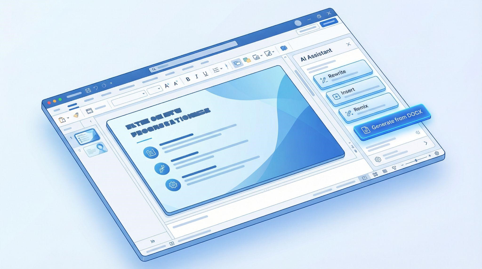If you already work in PowerPoint or Google Slides, PlusAI is the fastest path from DOCX to a polished deck, with no extra platform or copy-paste effort.