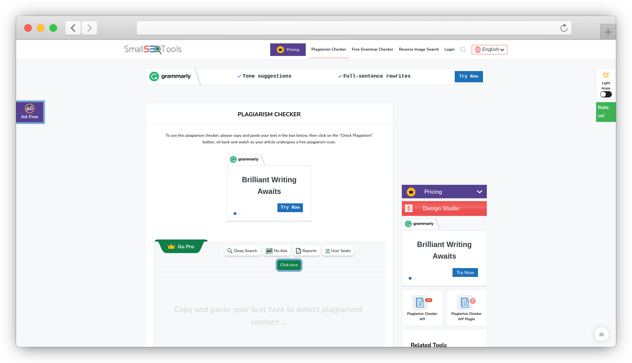 Pricing: The tool is free to access to check up to 1000 words without signing up.