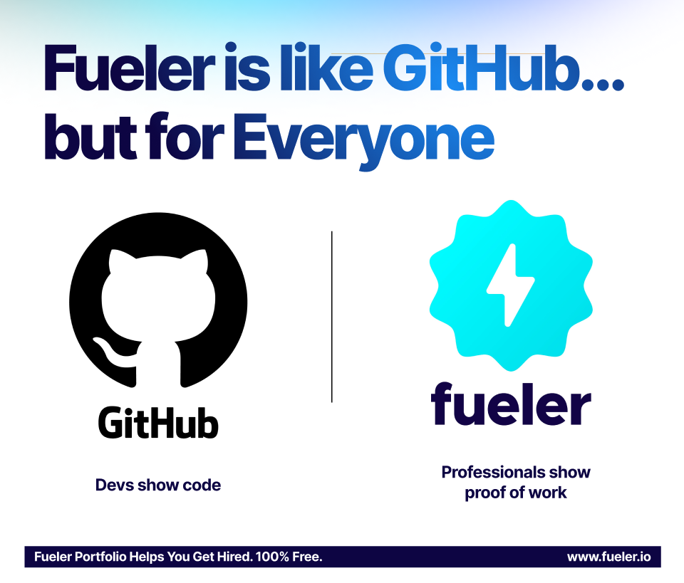 Just like GitHub hosts code repositories, Fueler hosts work portfolios. And just like companies browse GitHub to find developers, they browse Fueler to find all kinds of talent.