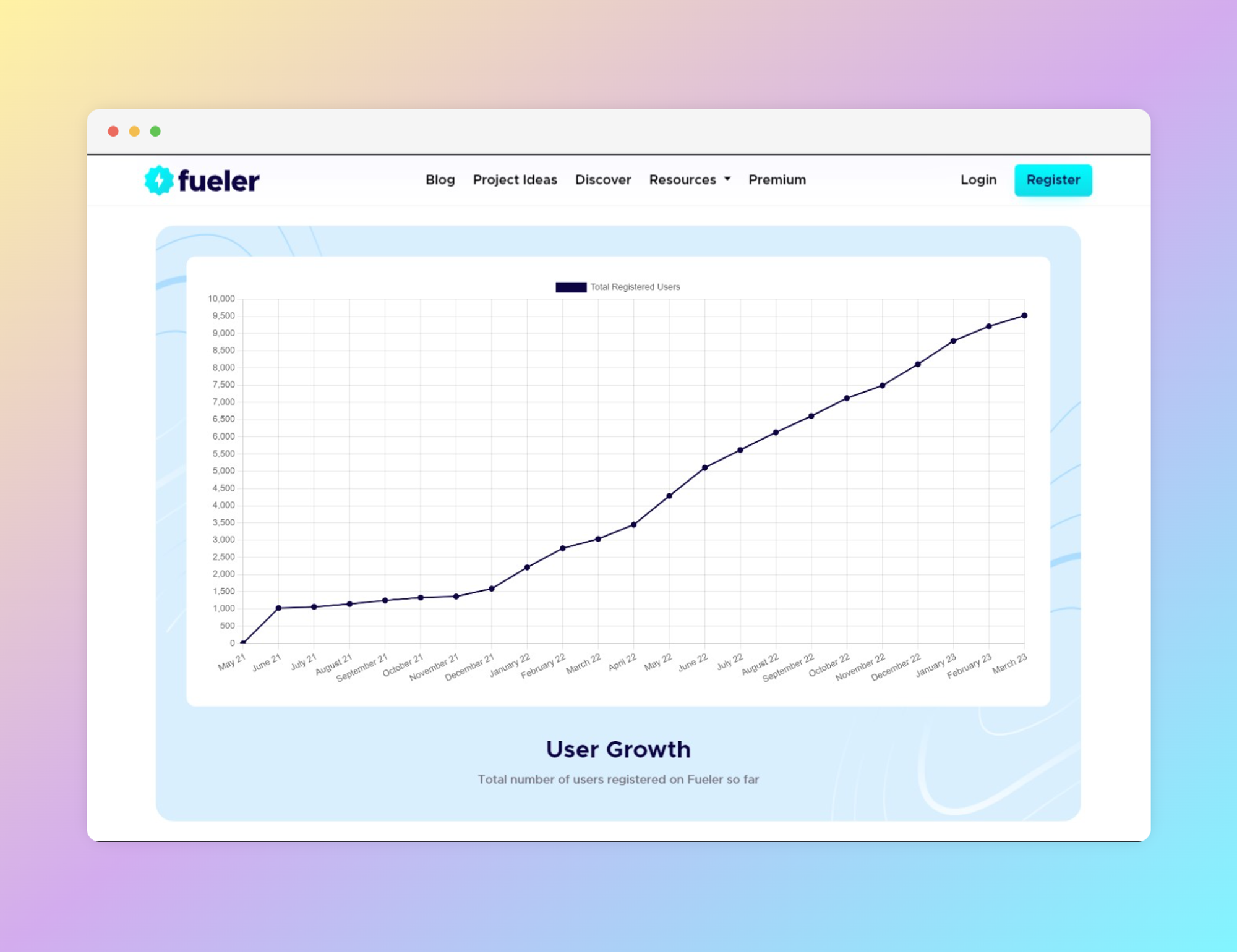 - We have added User Growth Chart on Live Page (https://fueler.io/live) to show the growth of users since May 2021.