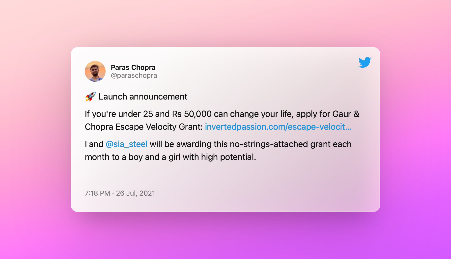 Paras sir made the launch announcement. That was the day I applied for it. Quite honestly I wasn’t sure if we will ever make it to the list. After seeing July result, was doubting, if we really deserve this grant.
