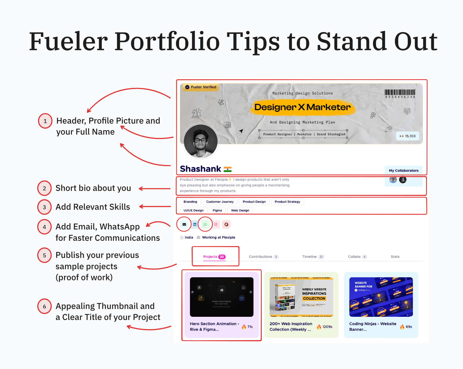 Please add your necessary details on your profile like name, display picture, skills, bio - so that the brand can know about you in details.