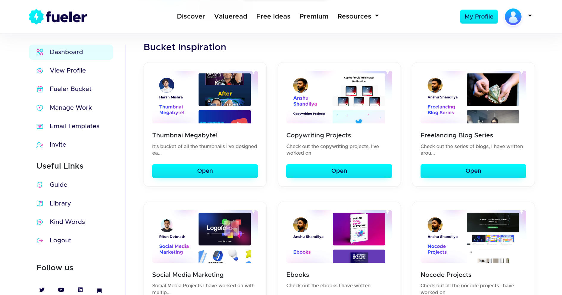 Now you will be able to get Fueler Bucket inspirations on Dashboard.