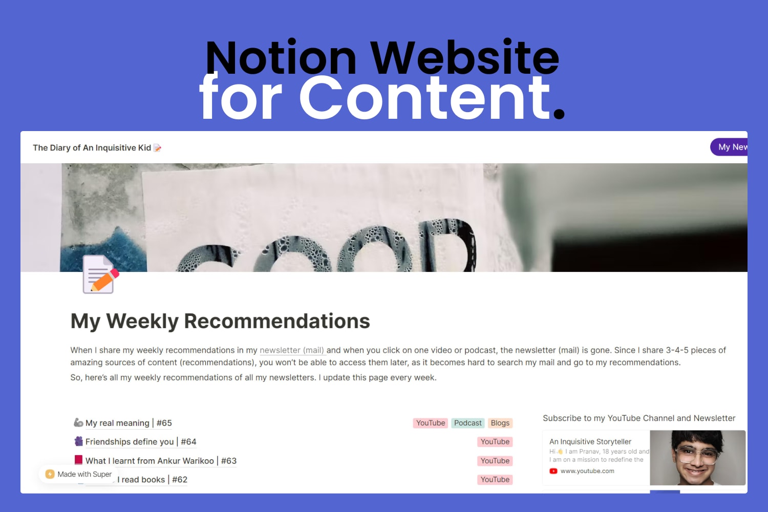 That's why I created a database on Notion where if someone misses to see my recommendations, they can check all the recommendations here.