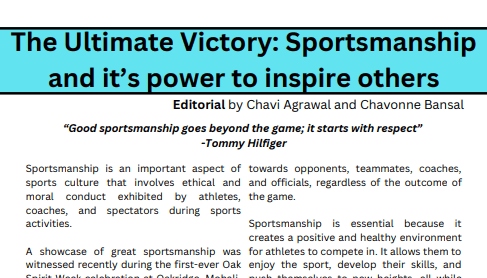 Through our co-authored piece, we aimed to inspire readers to embrace the true spirit of sportsmanship, encouraging them to approach sports and competition with grace, dignity, and a genuine appreciation for the shared human experience. We hope that our article will spark conversations, encourage acts of kindness, and ultimately contribute to the development of a sports culture that is characterized by fair play, respect, and a celebration of the human spirit.