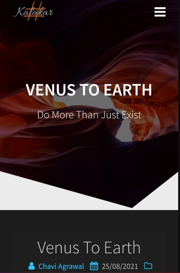 After participating in a writing competition held by Hashtag Kalakar, 4 of my write-ups were selected and published on their website. This one is a story titled "Venus To Earth".