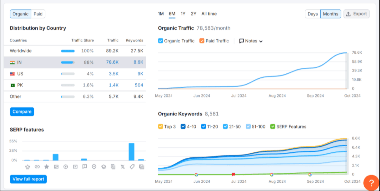 Through a focused SEO approach—covering keyword research, technical optimization, content creation, and backlinks—the Ayurvedic brand achieved 118.5% traffic growth and 8,500+ keyword rankings.